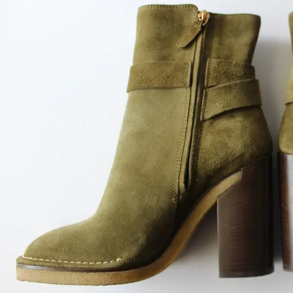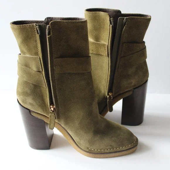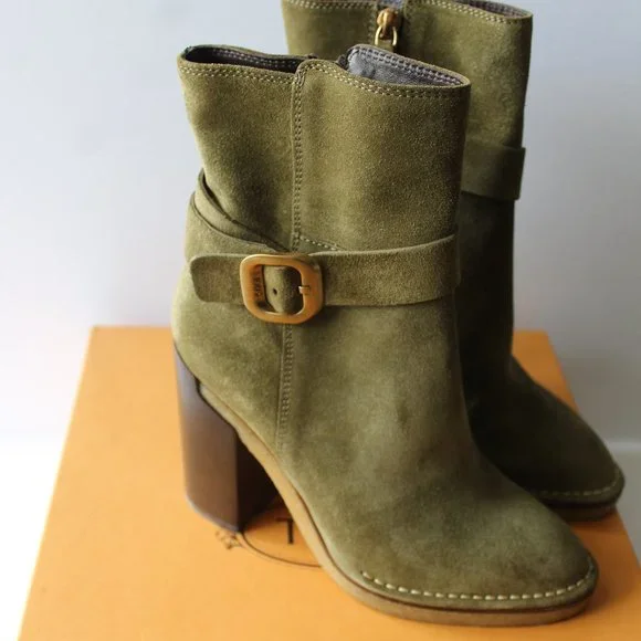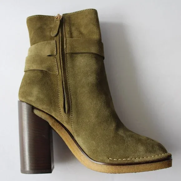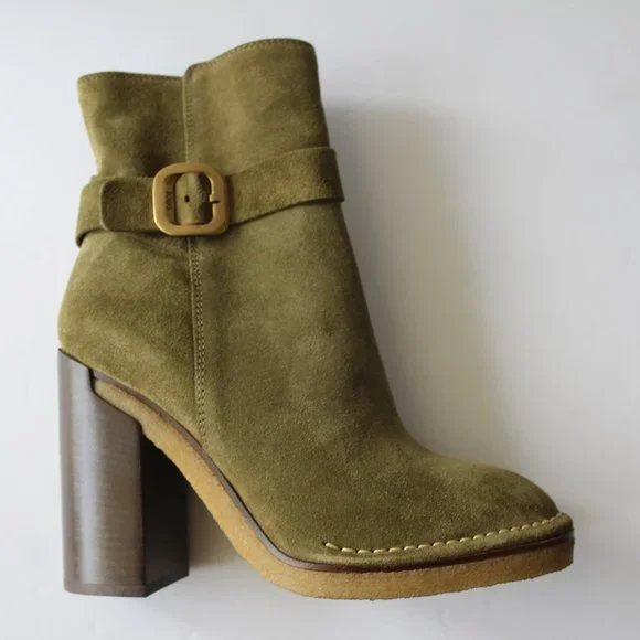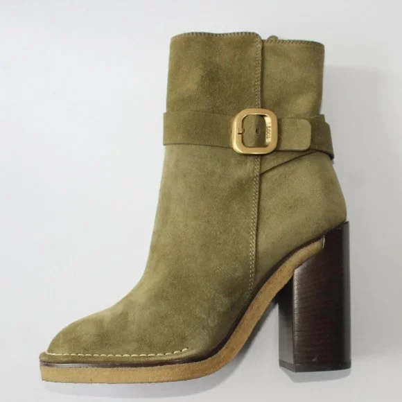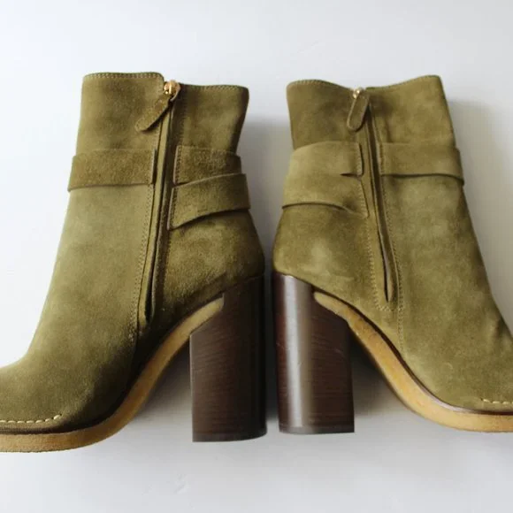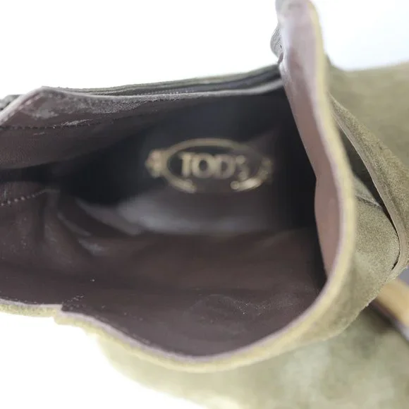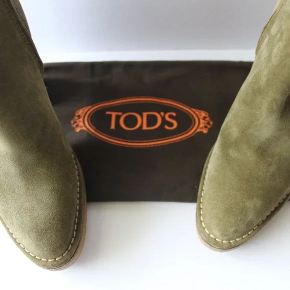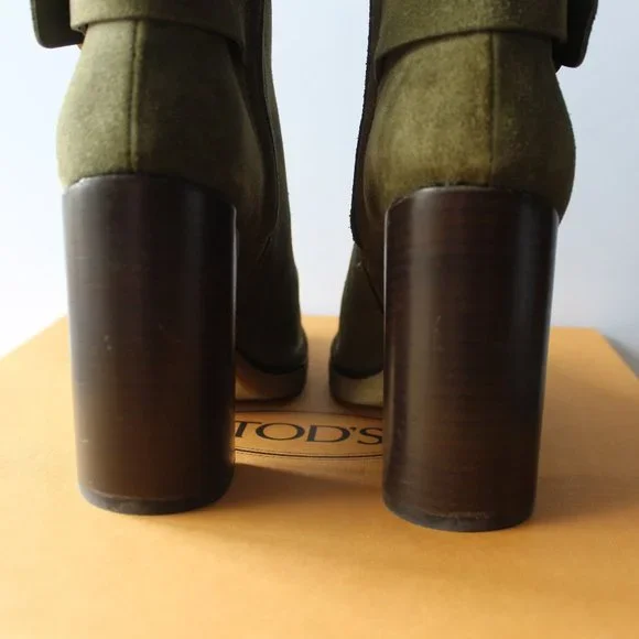 TOD’S - Women´s Block Heel Ankle Boots in Suede - New in Box - Includes Dust BagThis version of Tod´s boots are made from decadent suede in a classic ankle boot style with chic almond toes.Style yours with relaxed denim and dresses. SIZE:38.5 (EU)COLOR:Verde Lode (similar to Army Green)DETAILS:Ankle BootsTopstitchingBuckle strapsSuede upperAlmond toeSide zip closureLining: LeatherRubber soleMade in ItalyMEASUREMENTS:Heel, approximately 4" Shaft, approximately 8"Leg opening, approximately 6"❤️Stored and Shipped from a Pet Free and Smoke Free location❤️