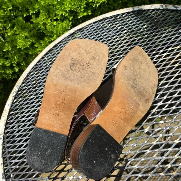 Marni Brown & White Patten Leather sling back sandals. Made in Italy