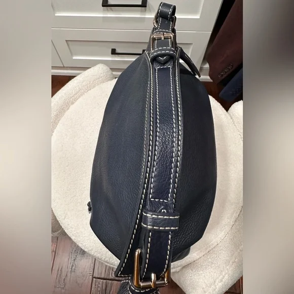 Dooney & Bourke Dillen MD Zipper Pocket SakNavy with white stitching, gold hardware.Approximate dimensions 12 x 12 x 5 inches.Adjustable shoulder strap drop 10.5 inches.Features...