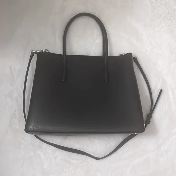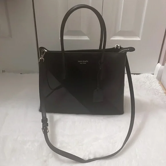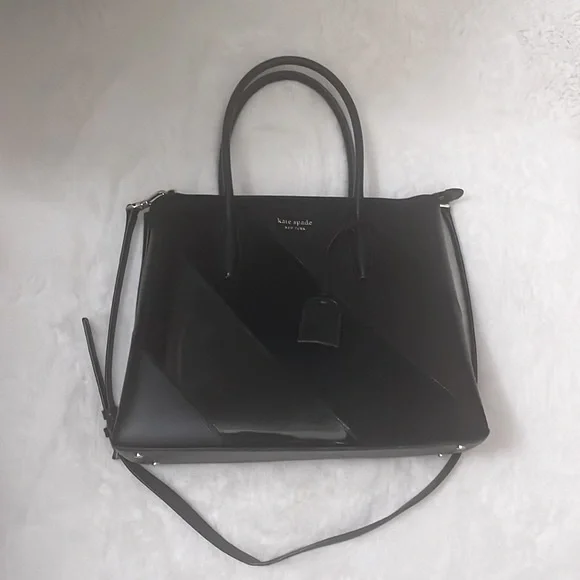 Kate Spade New York Eva Black Mixed Material Medium Top Zip Satchel with Crossbody Strap