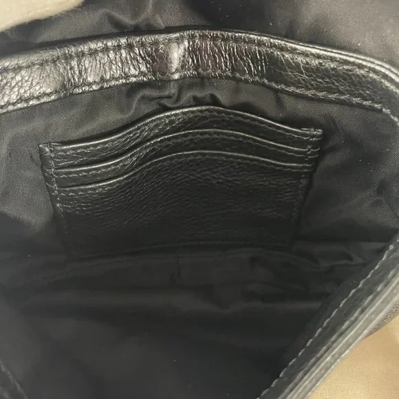 Tory Burch Black Leather Amanda Crossbody BagThree built-in card slotsPebbled leather with tonal topstitchingGold-tone hardwareRemovable, adjustable leather shoulder strap, 22"...