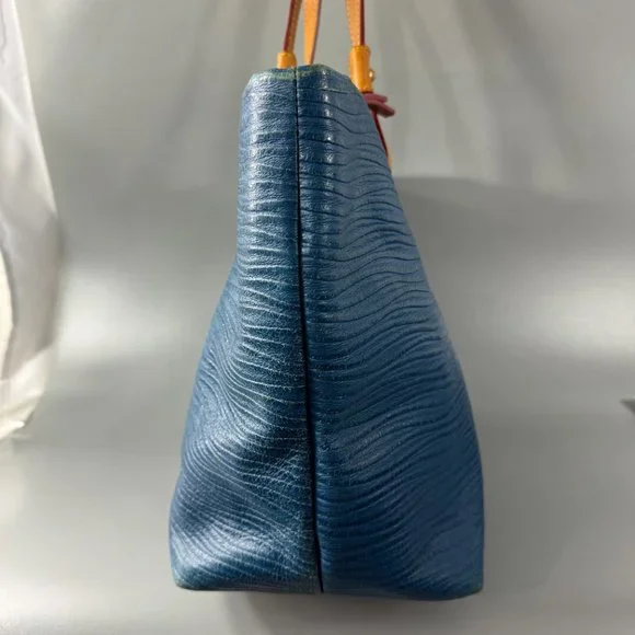 Vintage Dooney & Bourke Large Wavy Blue Leather Tote Bag