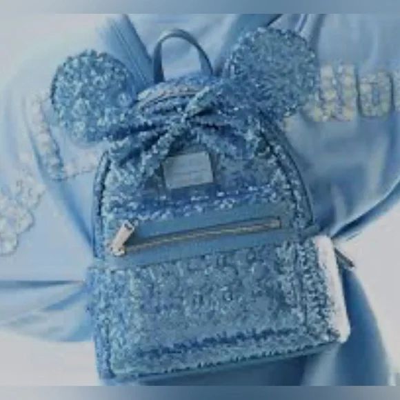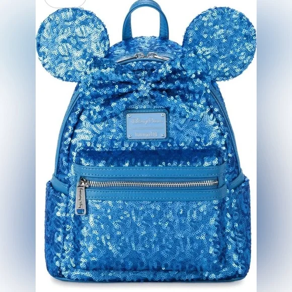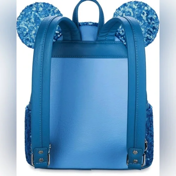 Loungefly Disney Parks Minnie Mouse Blue Hydrangea Sequin Mini Backpack