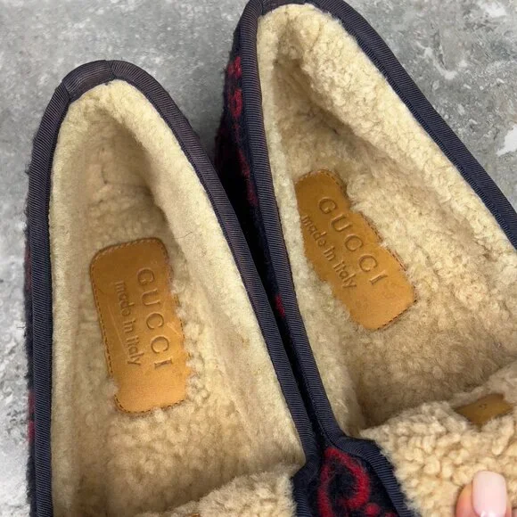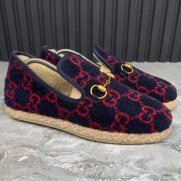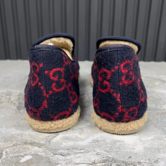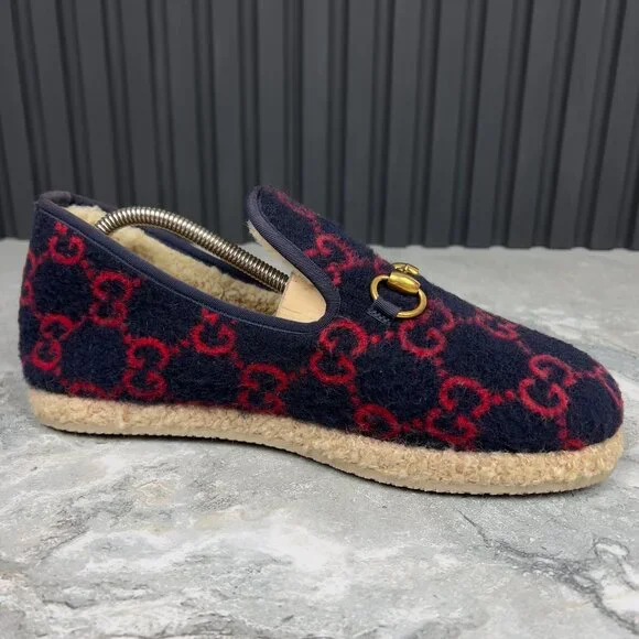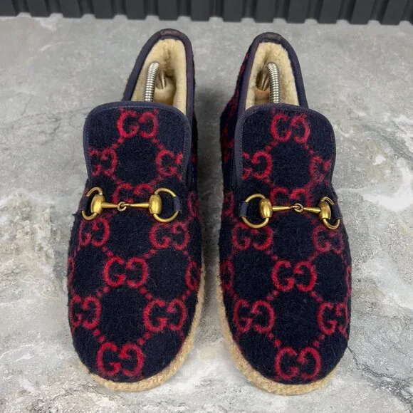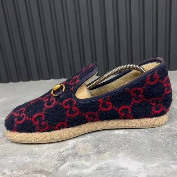 Fria Horsebit Espadrille GG Monogram Loafer Blue Wool Fur 6 G 10 US 40 EUR