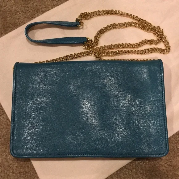 EUC Marc Jacobs leather chain crossbody. Teal blue leather with gold hardware. Removable chain cross body strap to use as a clutch. Perfect for wedding season and date nights! Excellent condition only used a couple of times. Paid $200+ from Nordstrom Rack.Comes with generic dust bag.Measures 8.5” W x 5.5” H and 21” strap drop.