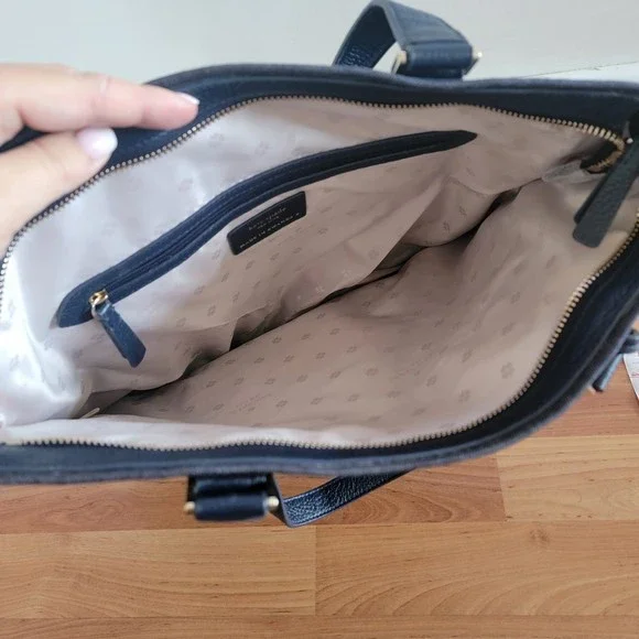 Kate SpadeStyle: UVRU2101Color: Portblue (931) On Purpose North South Denim ToteNWOTSize 11"h x 15"w x 5.5" d Strap drop: 8.25" MATERIAL Stretchy cotton-blend denim Spade floral jacquard lining DETAILS Tote bag with zipper closure Interior zipper pocket Excellent Condition Retail $198
