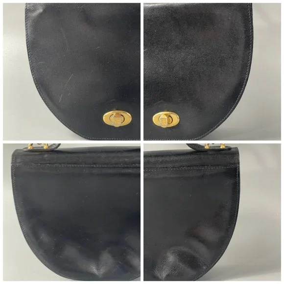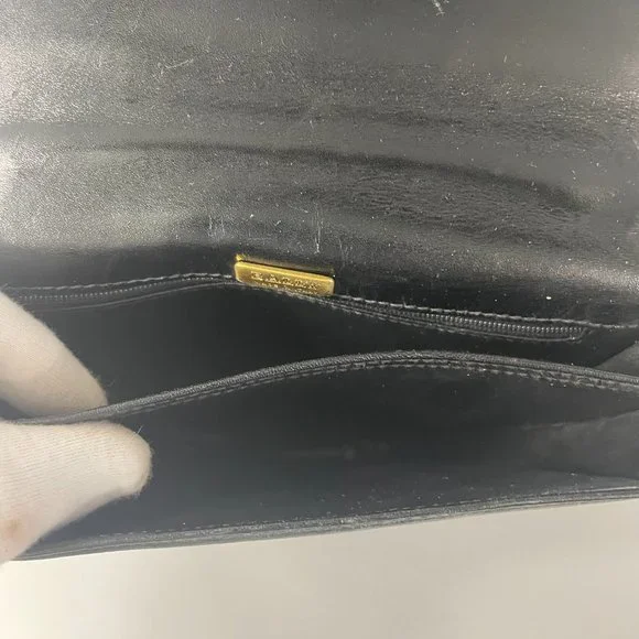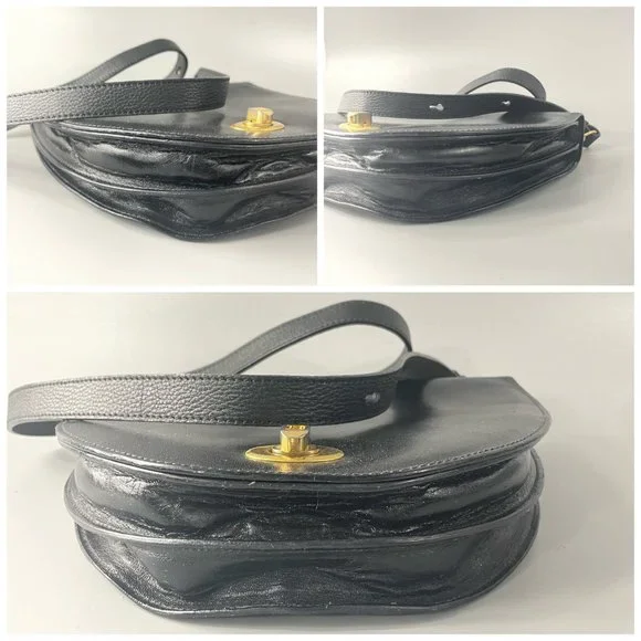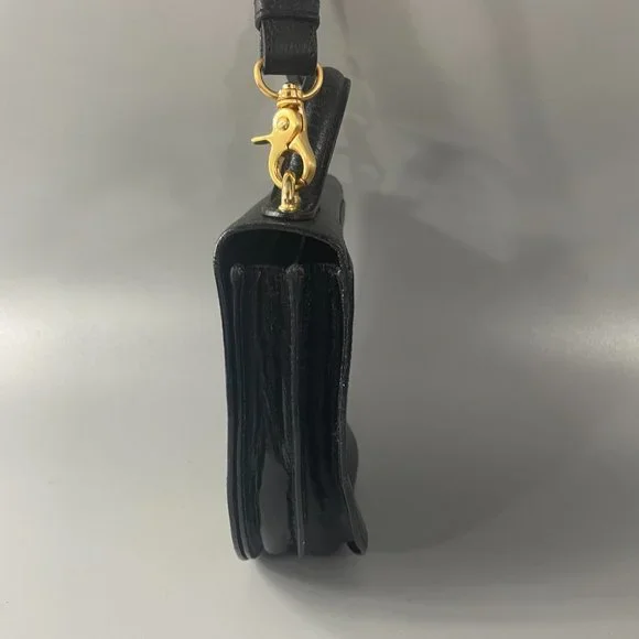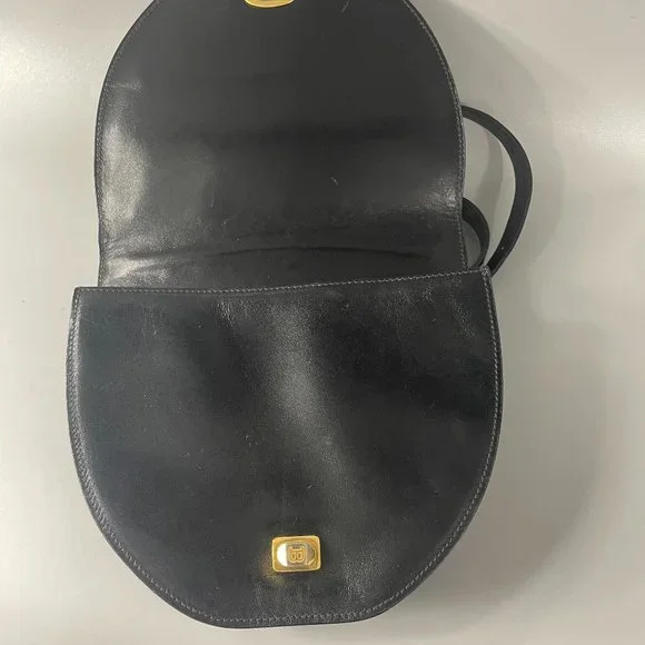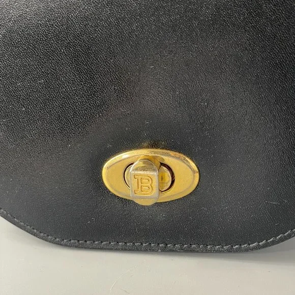 Vintage Bally Black Leather Handbag/Crossbody BagGold-tone hardware1 top handle, drop approx. 2´´Flap-over turn-lock closureBlack leather lining with 2 compartments and...