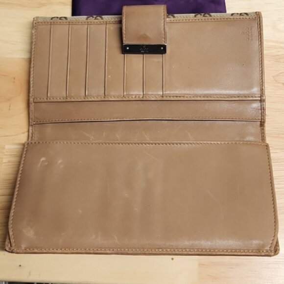 Vintage Monogram Leather Trim WalletGood vintage condition, but shows some wear (scratches on leather, wear on corners, some wear to interior lining, snap does not close tightly...