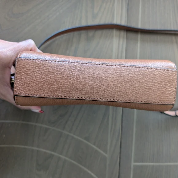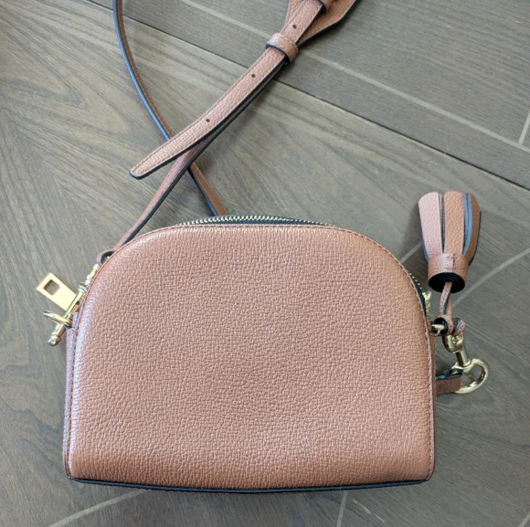 Like newColor: argan oilRetail $335Must have leather crossbody bag with embossed logo details on the frontTwo-way top zip closure