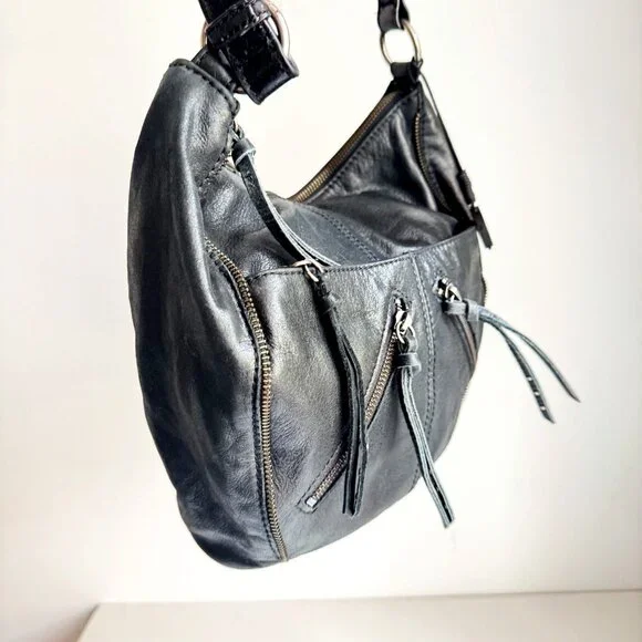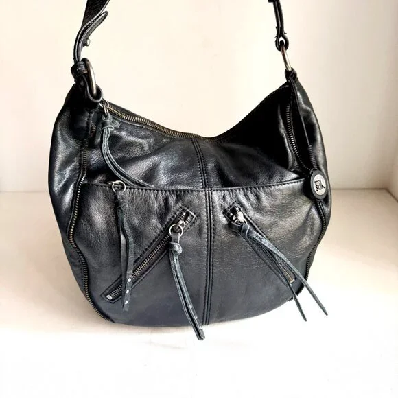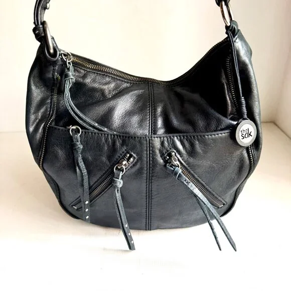 The Sak Black leather Zipper pocket Detail Oval Shoulder Bag.Excellent condition. Clean lining.10" x 13"_________