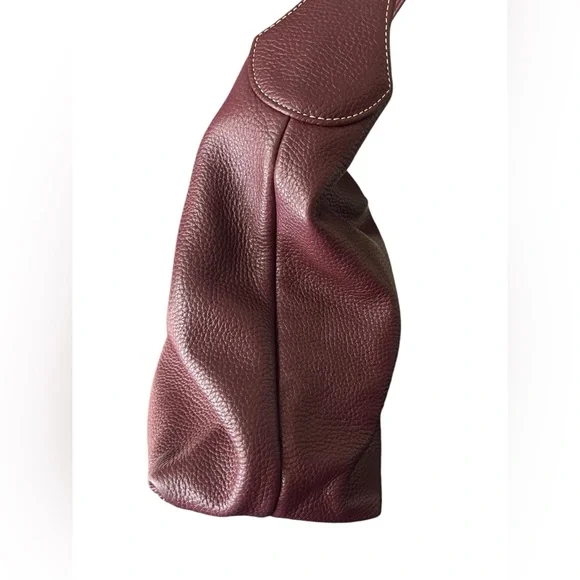 Gently used wine colored Dooney & Bourke Logo Lock Sac with Coin PurseThere are a few imperfections on the bottom where it has rubbed as noted in the video and one other spot...