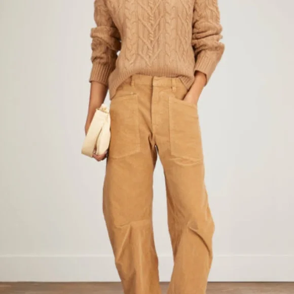 Nili Lotan Shon Corduroy Pant - Camel 8 Cord Barrel Bow Leg