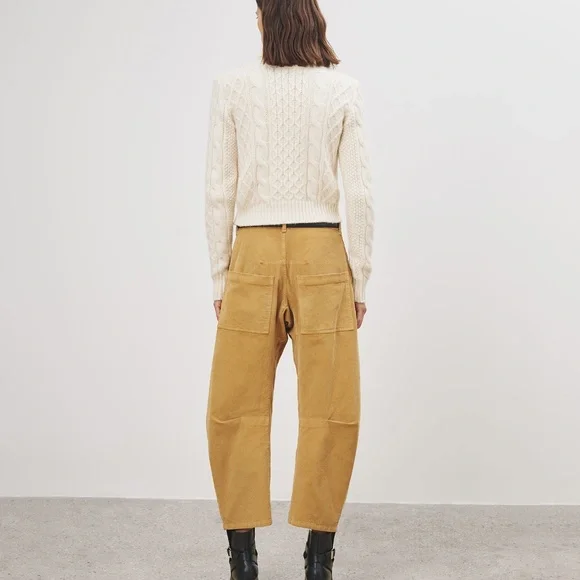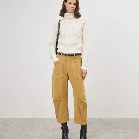 High-rise relaxed-fit pant in stretch corduroy. Uniquely curved silhouette. Easy gently tapered legs. Fabric: Mid-weight stretch corduroyCropped profile with shaping darts at kneesHook-and-eye closure at waist, zip flyNote: The Shon is roomy. If you want it to sit higher on the waist we recommend ordering a size down.