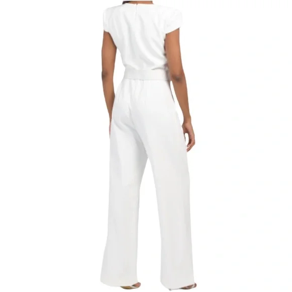 NWT Brand NEW with TagBelt included Fabric provide stretches Round neckSleeveless Regular length Wide legBack zip closure Inseam: 31”Dry cleanPolyester/spandex