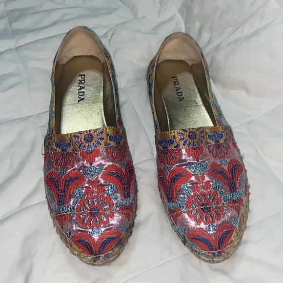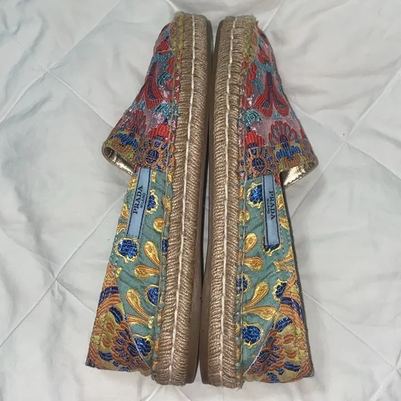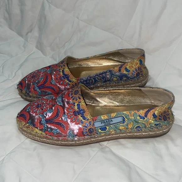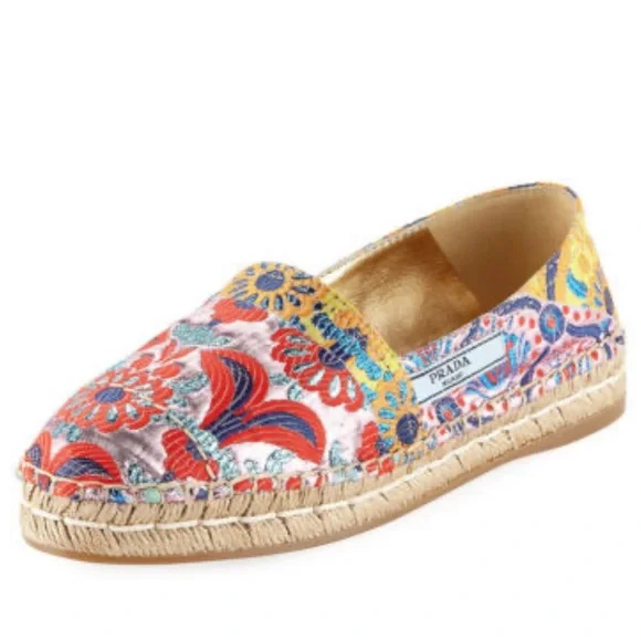 LIKE NEW RARE HTF Prada Multicolor floral Jacquard Espadrilles