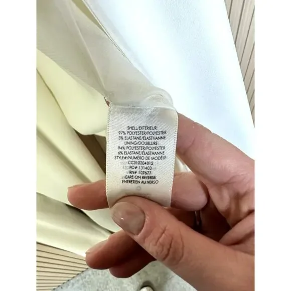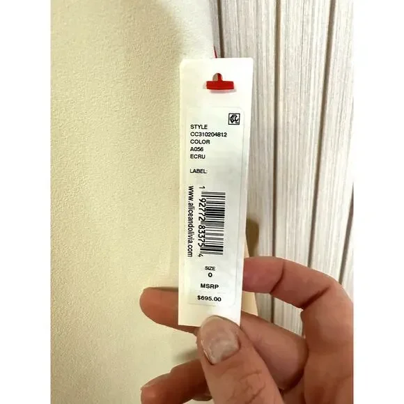Alice + Olivia Nova Cape Women´s Jumpsuit in White Size 0Brand new with tags, but has some dirt on the hem that should wash out easily.MSRP $695Size: 0 Color: EcruSelf: 97% polyester, 3% elastane. Lining: 94% polyester, 6% elastane. Dry clean only. Exposed back zipper closure. Smocked back. Detachable cape with padded shoulders. Crepe fabric.RACKG