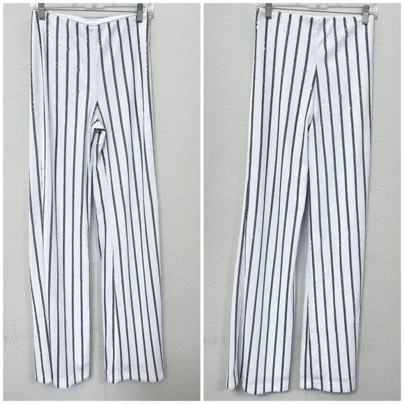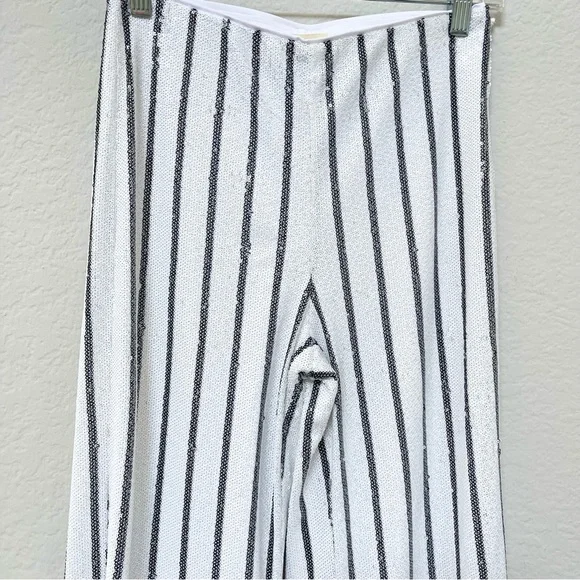L´AGENCE "Sapphire" Wide Leg Sequin Striped Pants White Size 2
