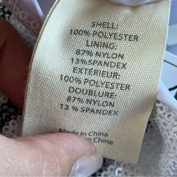 Condition: new with tags attached. Has not been worn. No damage or flaws.Sapphire pants offer a two-tone striped pattern and a delicately paillette-embroidered outer.Concealed side zip closurePulls onLined, not see through100% polyesterRise, about 11"Inseam, about 35"Leg opening, about 12.25"