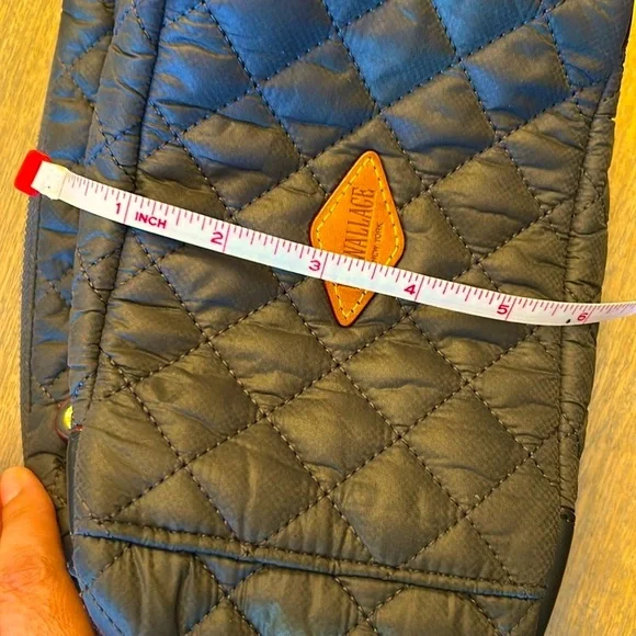 Stylish quilted design featuring leather details and 2 straps (chain and leather strap). Very spacious bag in a pretty gray with gold hardware and 4 external zippered pockets....