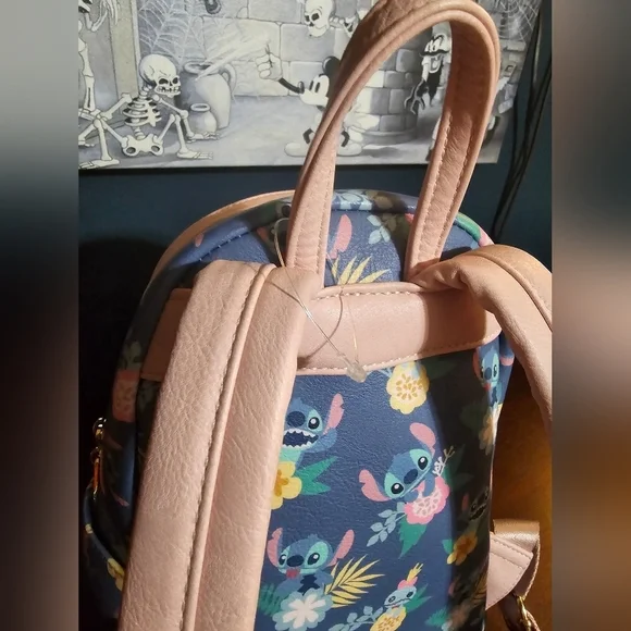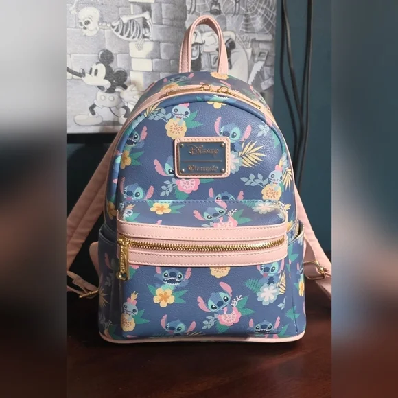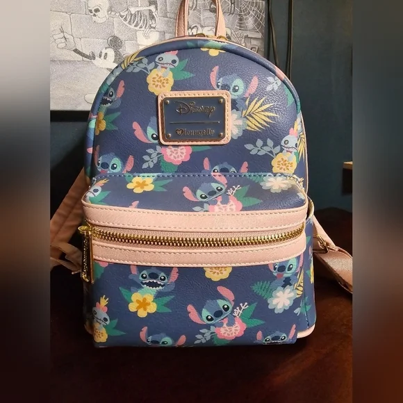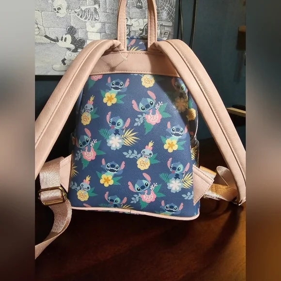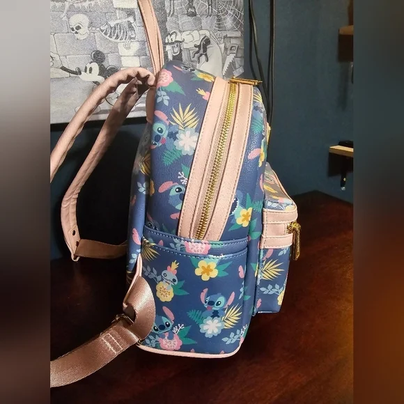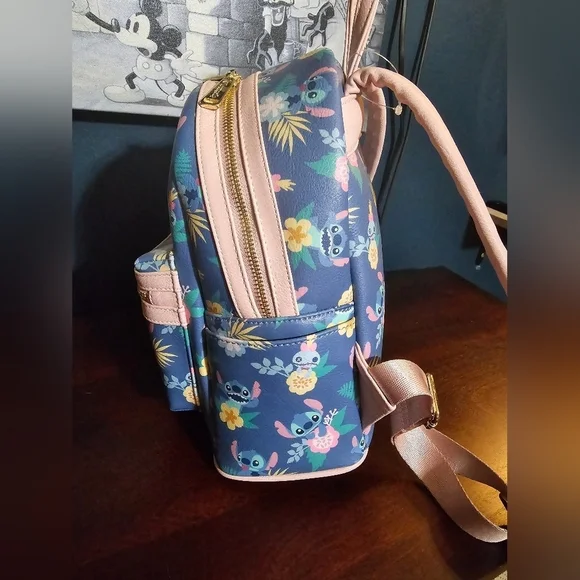 Gently used Loungefly ❤️ logo Disney Lilo & Stitch and Scrump floral backpack. In great condition for its age but one of the main zippers is a little stiff. Please view all photos for condition. Description from when it was available for retail sale:Show off your Disney pride with this Lilo & Stitch and Scrump Floral Mini Backpack! Made of faux leather, the bag has 2x straps, 1x handle, 2x zippered compartments, and 2x side pockets. This mini backpack measures approximately 10 1/2-inches tall x 9-inches wide x 4 1/2-inches long.