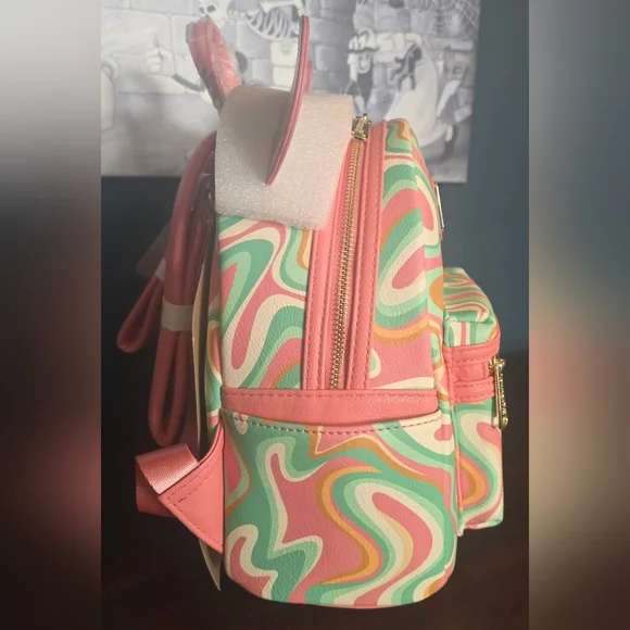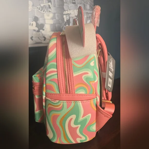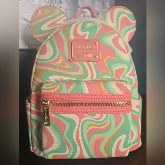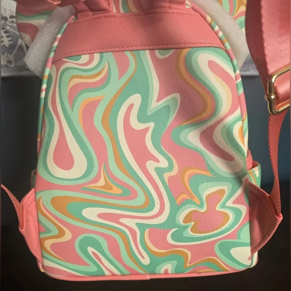 2022 Loungefly Disney Parks Mickey Mouse swirl backpack with tags attached. Please view all photos for condition. Product description from Disney:Release Date: 2022-11-14UPC: 420143267236Description:Get psyched-edelic over this Loungefly Disney Parks Mickey Mouse Swirl Mini Backpack. The faux leather carry all features Mickey icons hidden in the sweetest, swirliest pattern. You just won´t find a prettier mini backpack.Faux leather mini backpackAllover swirl pattern featuring Mickey icons3D ear appliques on topDouble zipper main compartmentFront zip pouchLoungefly logo metal pullsFaux leather adjustable padded shoulder strapsTop carry handleSide slip pocketsNickeltone hardwareDisney Parks x Loungefly logo label platePart of our Disney x Loungefly Collection 60% PVC / 40% polyurethane9´´ x 10 1/2´´ x 4 1/2´´Imported