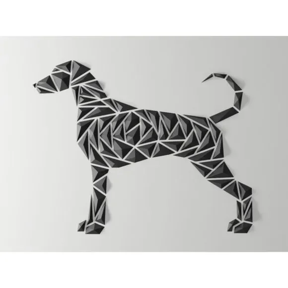Add a touch of modern elegance to your space with this geometric German Shorthaired Pointer wall art. Its unique polygon shape and sleek design make it a perfect addition for any dog lover. This eye-catching piece is sure to impress and add a stylish flair to your home decor.Dgemily was created by Géric and is based in France. He is mainly playing with polygons to create large geometric wall decorations exploiting the benefits of 3D printing. These unique designs are provided in numbered multi-parts to be assembled like a puzzle game directly on walls or on frames.-----------------------NOTE: If you need custom sizes, don´t hesitate to contact me. I am more than willing to accommodate any size you request. These art pieces can be fully customized to match your personal preferences.Dimensions from outer wall: in inches: 0.78" L x 52.44" W x 41.45" H-----------------------"All are art pieces are printed in PLA .""PDF files included for a seamless installation process.""Price is for one.”"Choose from multiple colors to make a personalized statement.""Standard shipping included tracking number to USA and Canada and most Countries around the World"