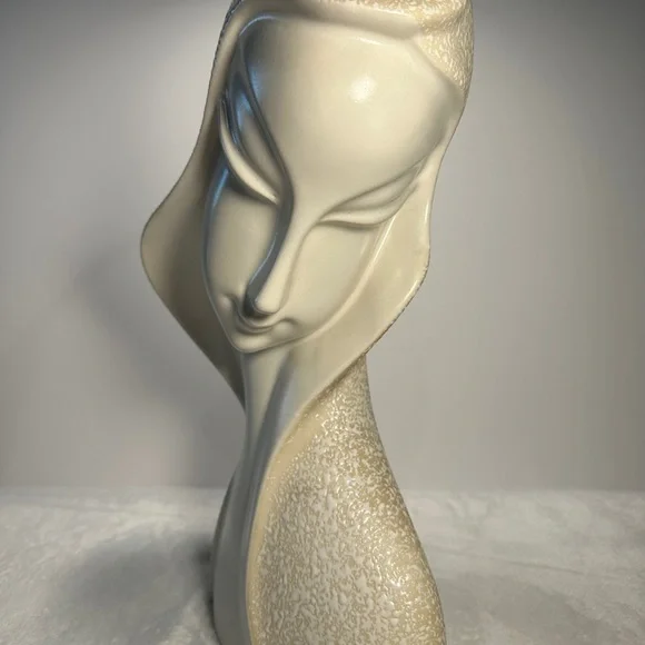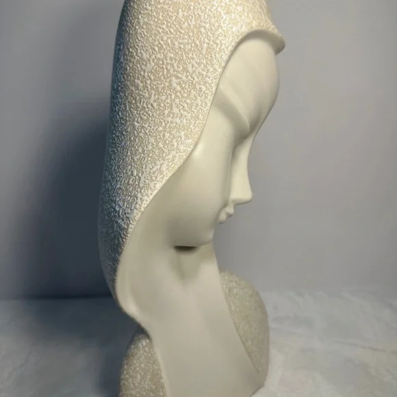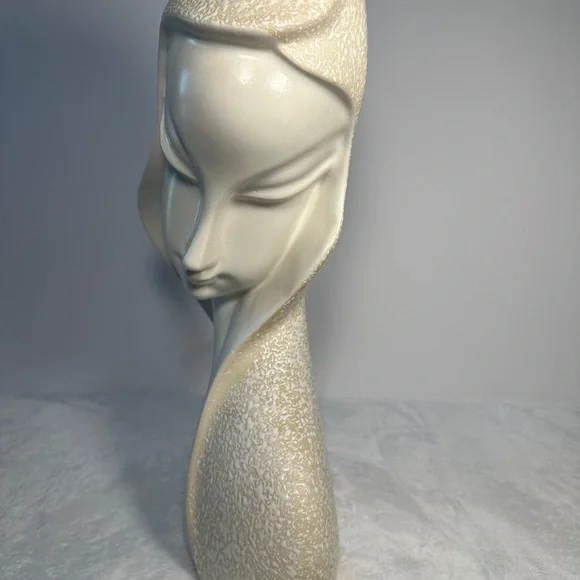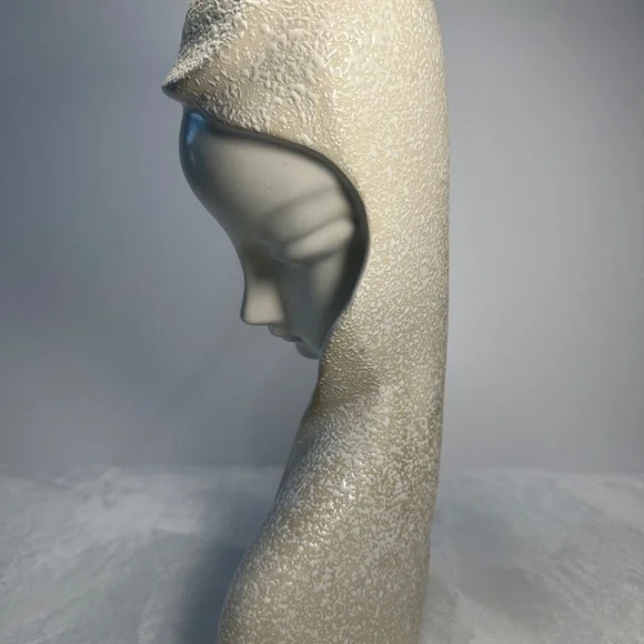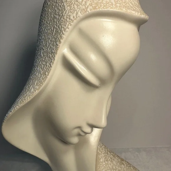 MCM Signed 1959 Off White Textured & Smooth Sculpture Pottery Bust of A Woman