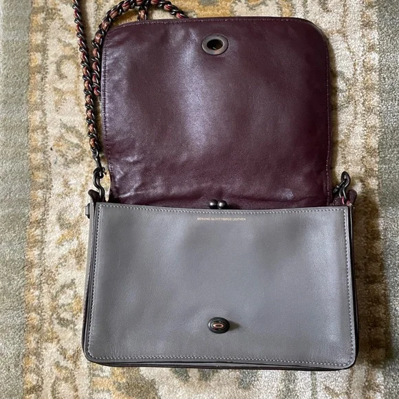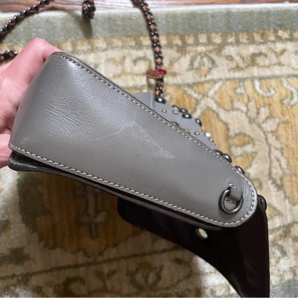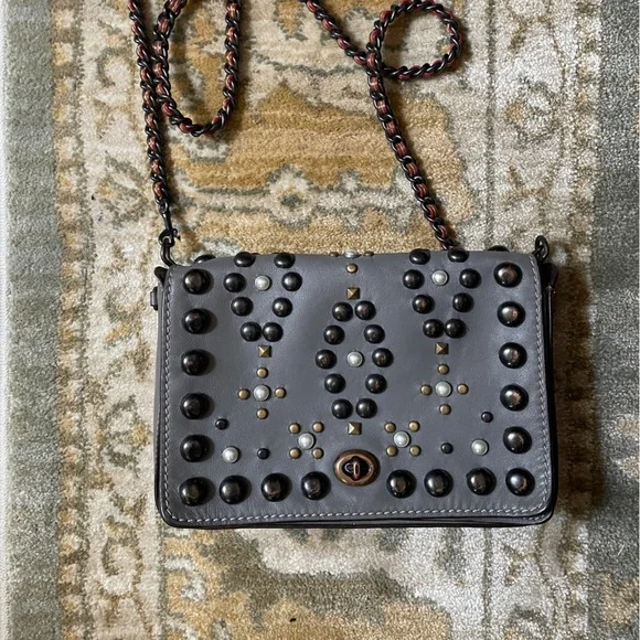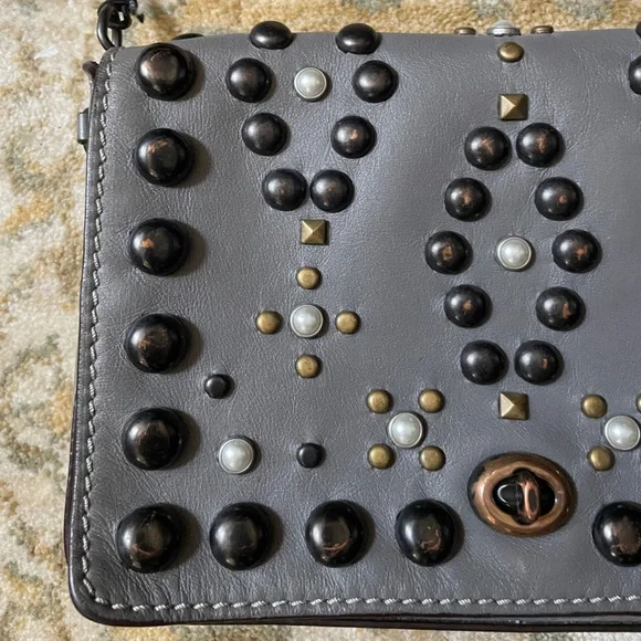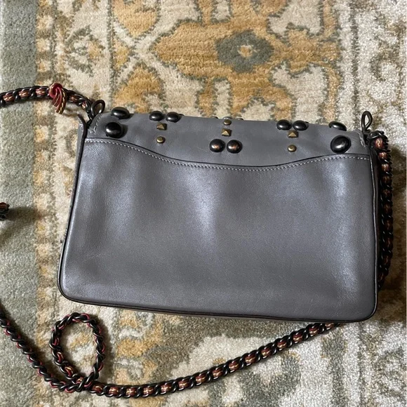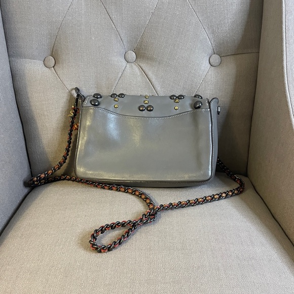 Coach Grey Leather Rivet Studs Crossbody Purse