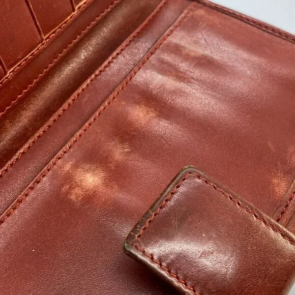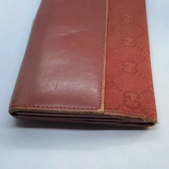 **Bundle for bigger savings & combined shipping!** Authentic Red Canvas & Leather Long Slim Wallet / Checkbook HolderMeasures approximately 6.9" x 3.5" when closed. Opens to reveal 6 card slots and four long slim slots for bills, checkbook, cash, receipts, etc. Back side has a snap closure coin compartment.Pre-owned & older item with signs of general wear and use. There are some scratches throughout and some wear around edges, especially at the folds and the snaps are slightly loose but still seem to hold pretty well. Some worn spots on the leather interior. Overall, the wallet is still in useable condition with a lot of life left. As pictured. Thanks for looking!