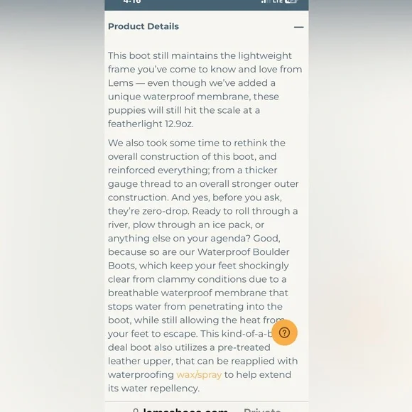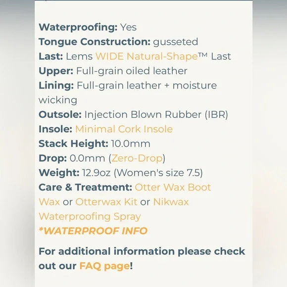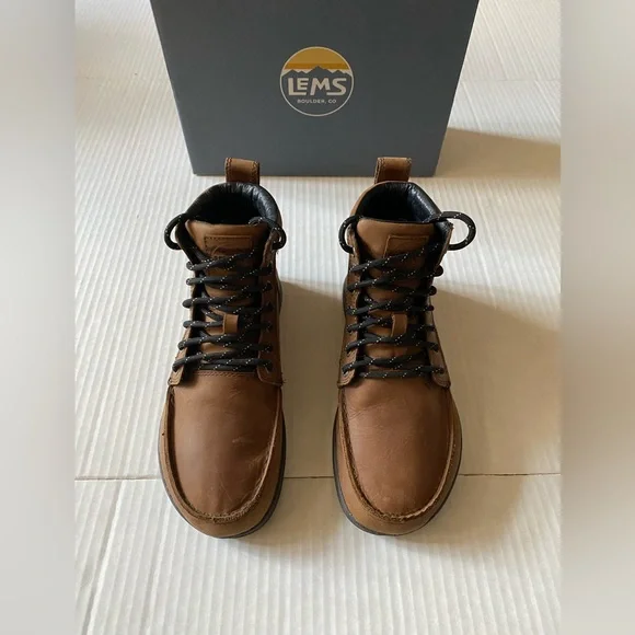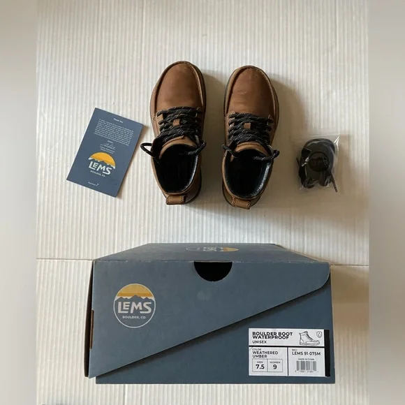 Great Boots only worn a couple times unfortunately snug with correct toes next size was to large in excellent pre loved condition have been leather cleaned and conditioned Lems Unisex Men’s Size 7 1/2 Women’s 9 Waterproof Boulder BootsNatural Foot Zero Drop Shoes Color Weathered Umber a Rich Tobacco BrownComes with Original Box and Extra Lacessold out on websitepurchased at Northwest Foot and Ankle listed high not sure want to part with and to compensate for 20 % Posh fee