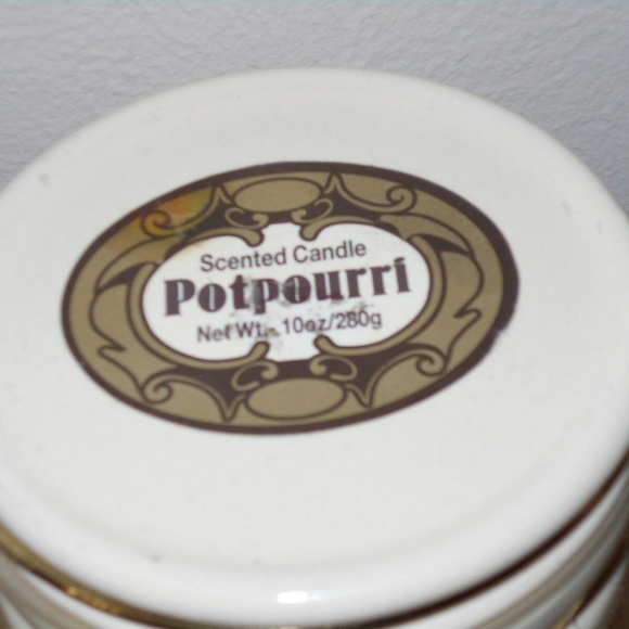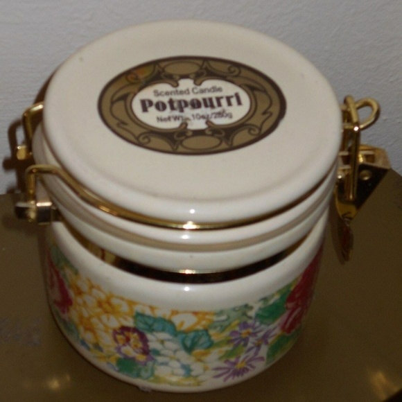 Vintage Beautifully Designed Rare Potpourri Sented Candles, it is 10 oz . It burns 30 to 40 hours. It has a beautiful fresh citrus-like pineapple-like scent, it comes in a beautiful reuseable air tight stoneware container. hard to findThank you for looking, happy purchasing.