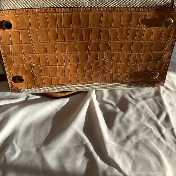 This bag looks like brand new….impeccable condition….absolutely nothing wrong with it! It’s clean and in perfect condition. It’s a great bag for a professional…easily fits an iPad Pro.Size is 14”W x 13”H x 5” D
