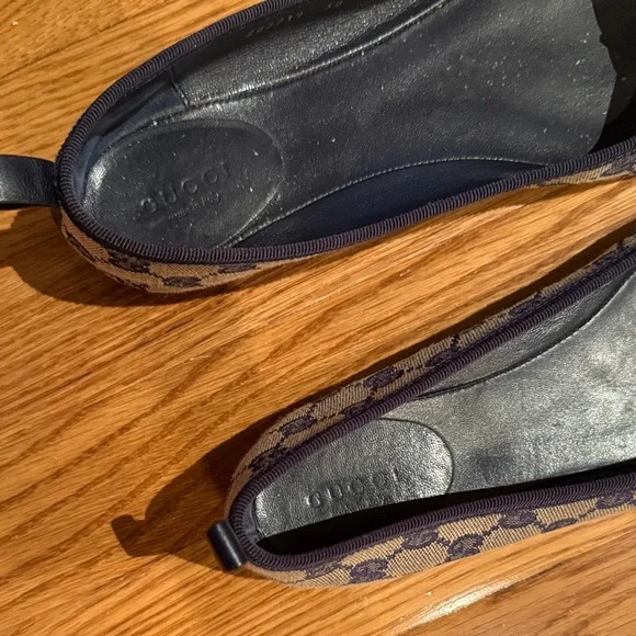 Elegant loafers with signature logo design. Navy accents enhance style. Perfect for any occasion.