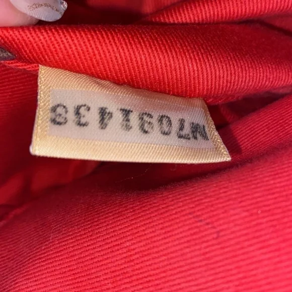 -Dimensions: Height 10.5", Length 15", Depth 6.5"-No outside pockets-Main closure is with a clasp as shown in photos.-Enclosure on both sides makes opening smaller as shown in photos.-Inside has one zipper pocket and one open phone pocket.-Red interior-Outside is a deep brown leather with a hue of red.Has some slight wearing on corners as shown in photos.Please note bag is stuffed for photos and stuffing will be removed for shipping. Ships from a smoke free home.Please see all photos or request additional photos and ask any and all questions prior to purchase. Thanks!