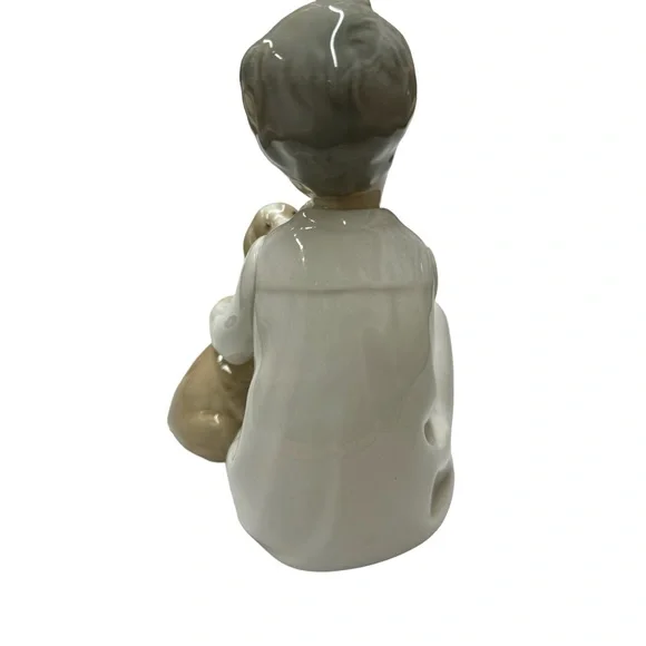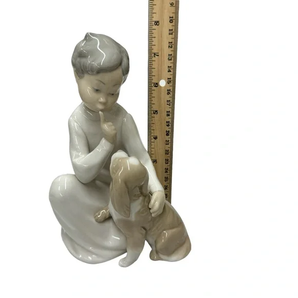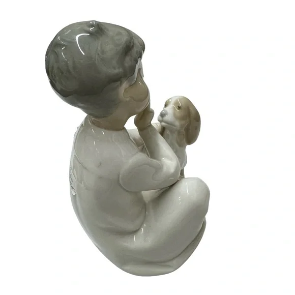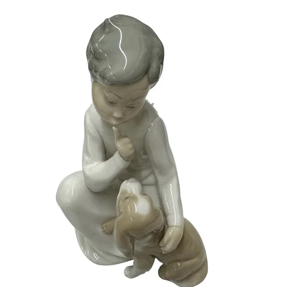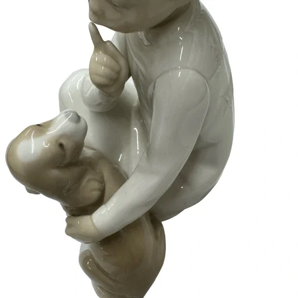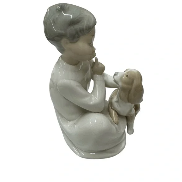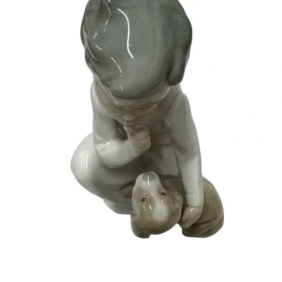 Vintage Boy With Dog By Lladro Porcelain Figurine In excellent condition. No chips, no cracks.Issued in 1970 and retired in 1998. A very rare figurine that was produced in limited numbers. This handcrafted porcelain collectible was made in Valencia, Spain by the internationally famous sculptors at the Lladro Company.