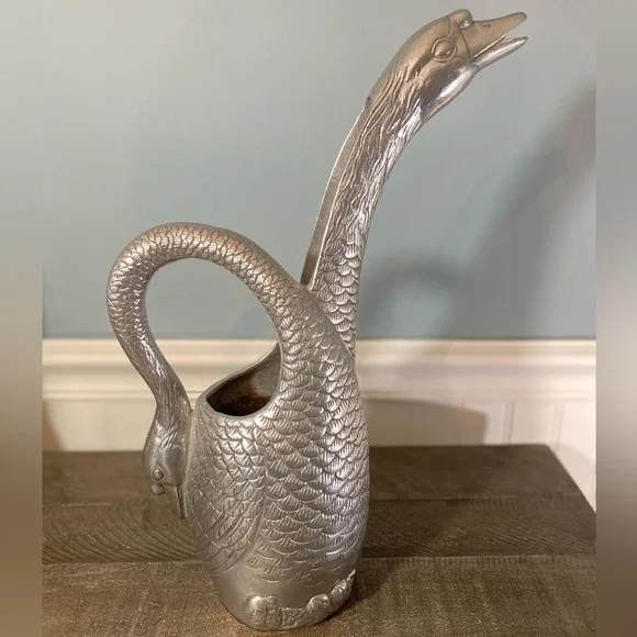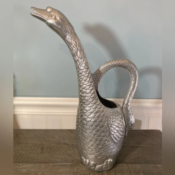 Arthur Court Vintage 1989 Polished Aluminum Swan Goose Pitcher 13.5" Tall. Good Pre-owned condition, please see pictures for more details