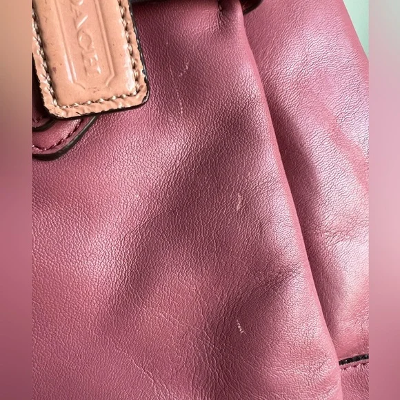 Coach Chelsea Jayden leather shoulder handbag in a mauve pink / dusty rose color with 4 satin lined compartments. Previously owned and in good vintage condition. See photos for...