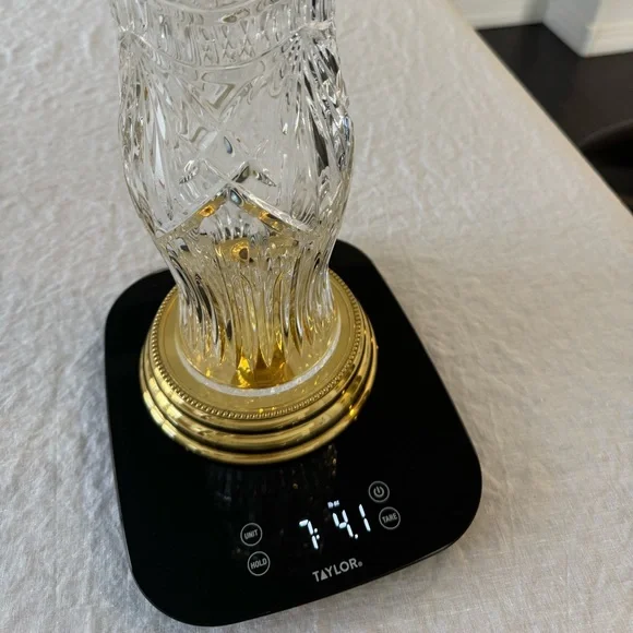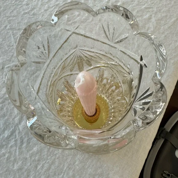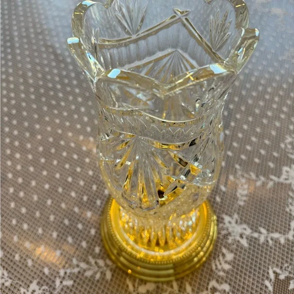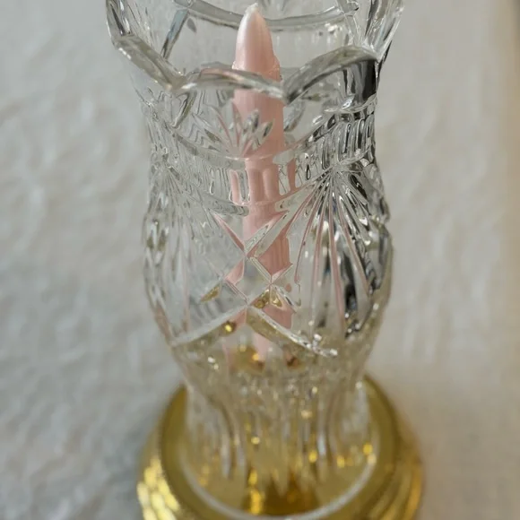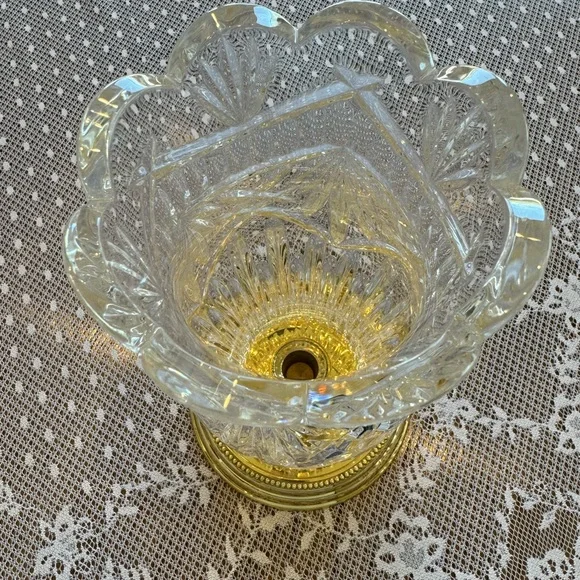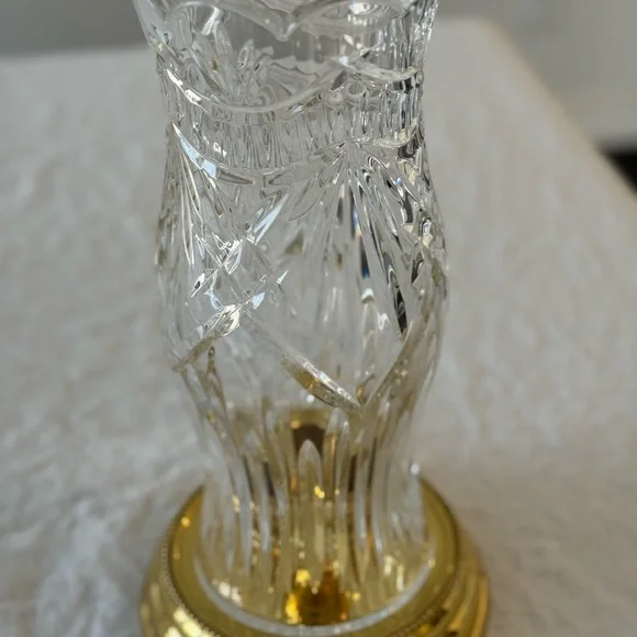 Crystal Hurricane Candle Holder .HURRICANE CANDLE HOLDERBy Crystal Mouth Blown Hand Cut made in Ireland12" tall 4.5" wide BRASS base 5.75"Can be used with or without Hurricane...