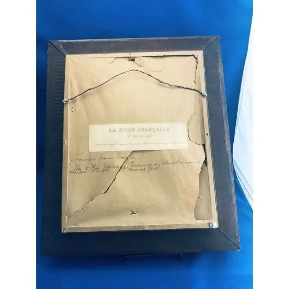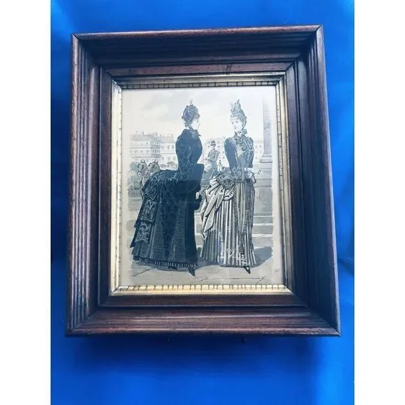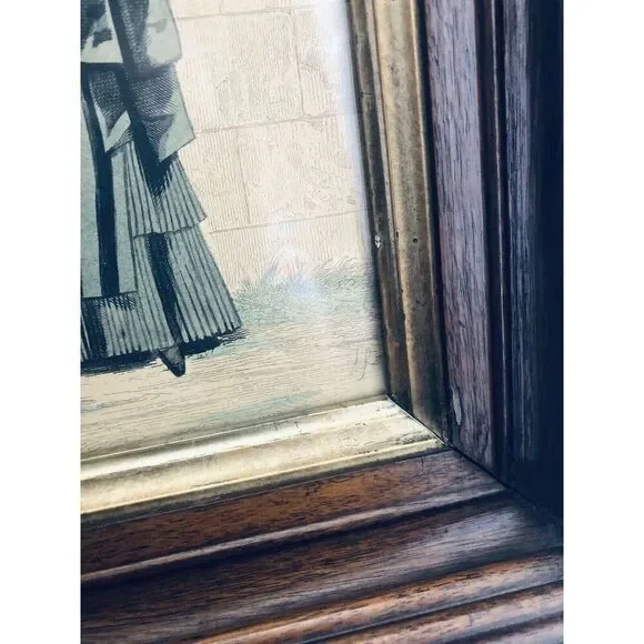 Victorian Henry Petit Journ Al Le Printemps, autograph Rue des Filles S Thomas 1 of 5 prints, item form 1860, given to a couple as a gift from France and frame from Rome. Historical event in 1860 marriage. Back has information but paper is torn . Frames has several worn areas due to age, please see pictures, Hand made real wood and print from France artist Henry Perit.La Mode Francaise JR Framed 1860. Rue De Lille, Parfumerie Oriza L. Legramdes Cours de Russie & Italie 207 J. Honore. Frames from Rome, gift of frames prints of artist J.K, given as a wedding gift in 1860. Back of frame is torn but information is visible. Frames has a few worn areas please see picture. Hand Made in Rome and Art picture from France. Very rare,includes 2 picture artistic women and 2 wood frames from 1860 era. Antique from Rome and France. Frames with walnut gold gilt, deep layers of wood and one small gold tone frame inside.