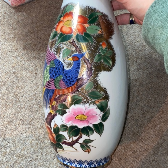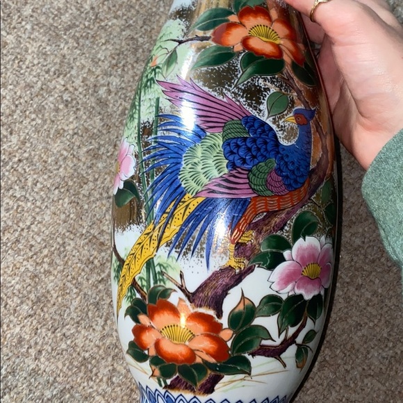 This is from Japan 1920s . Hand painted original beautiful art piece with a colorful bird and flowers. Signed on bottom. No flaws