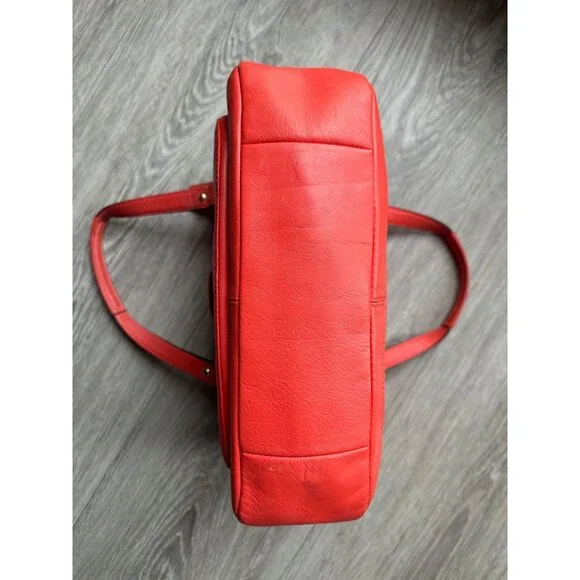 Bright and fiery beautiful deep orange / red Coach Bag. Large buckle (magnetic snap) on the front flap . Zip closure main compartment. Carry as 2 handle satchel or attached the...