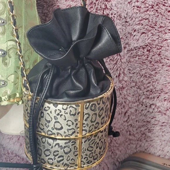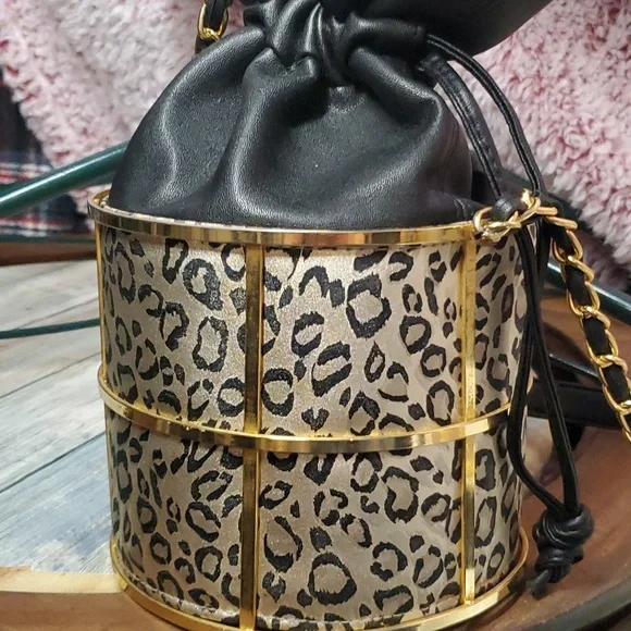 Vintage cross bag with Cheetah print! in perfect condition black leather bag wrapped in a gold basket with a gold chaneBraided with black leather#144