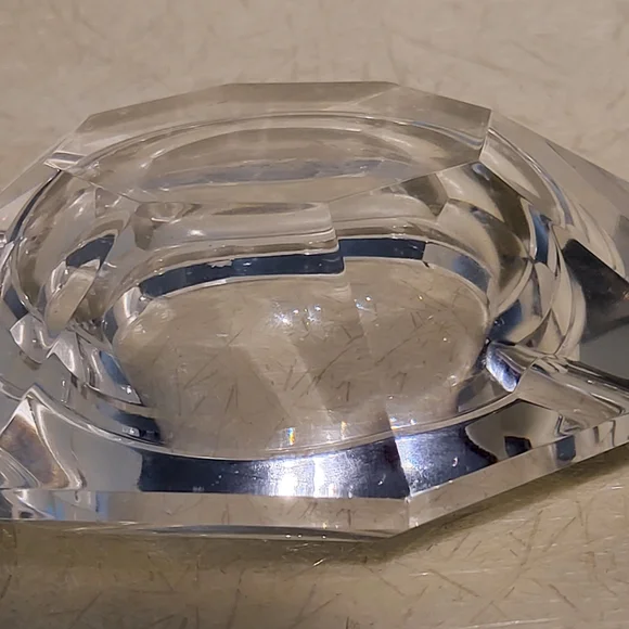Check out this Val St Lambert Crystal Faceted Ashtray 5"x1 1/2" Mid-century Modern. Appropriate wear for a vintage item.Please examine the photos carefully for condition issues. Make an offer, you deserve this.