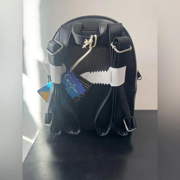 Loungefly Coraline between Worlds Mini BackpackProduct Details:Approx 8" x 4 1/2" x 10 1/2"PolyurethaneInterior drop pocketFront zipper pocketBy LoungeflyNew