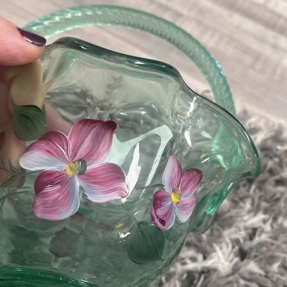 Beautiful signed and hand painted Fenton basket.has original 1990 sticker and Fenton signature