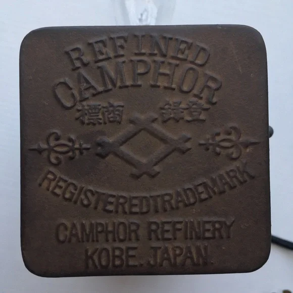 This is a one of a kind antique vintage metal lamp with switch flip. It is a reconstructed metal tin with embossed writing of Refined Camphor Camphor Refinery Kobe Japan. Because...