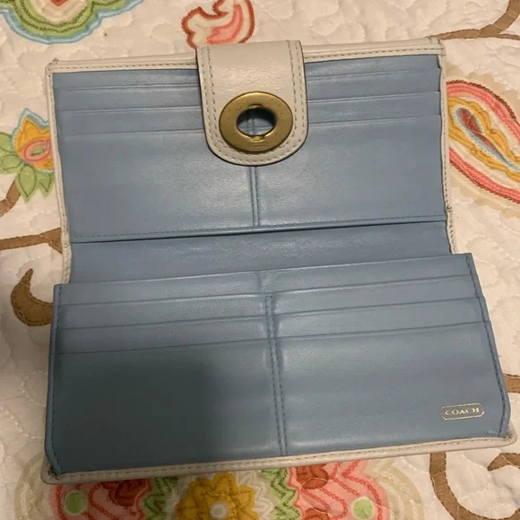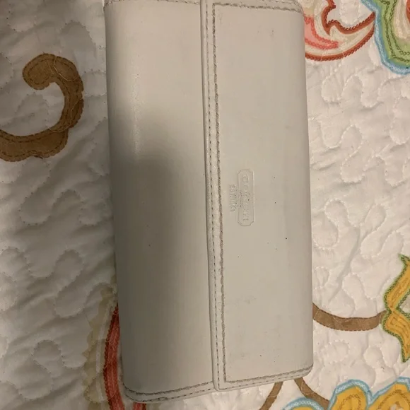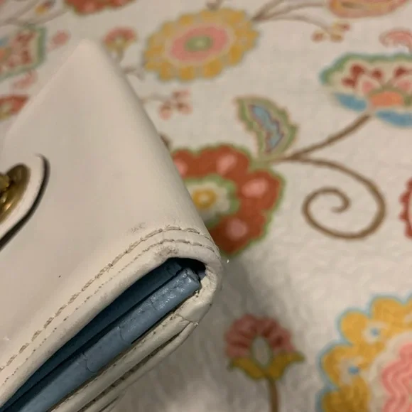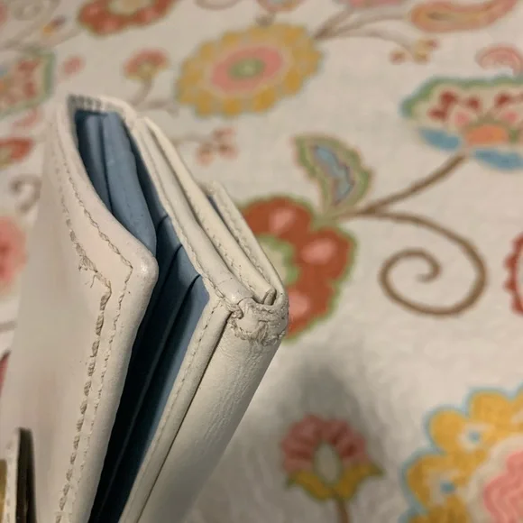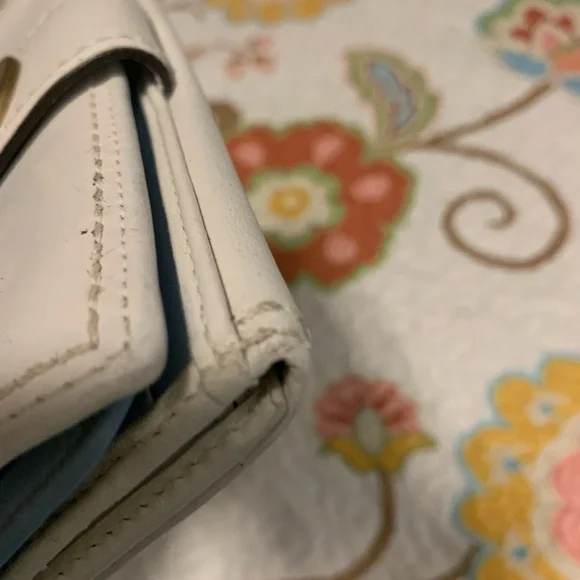 Elegant white wallet featuring a gold clasp. Perfect for everyday use. Minimum wear and tear. If you’re looking for a rate and well kept wallet, this one is for you!