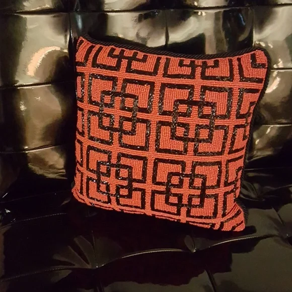 NWT in MacKenzie Childs bag.Red & Black beaded geometric pattern. Back side of pillow is black silk..