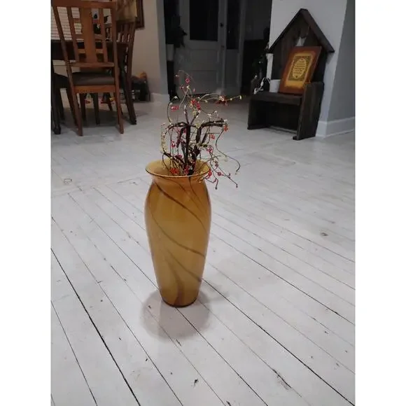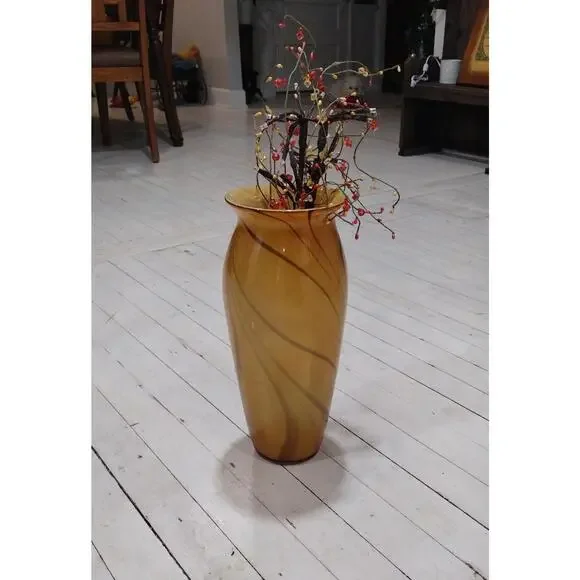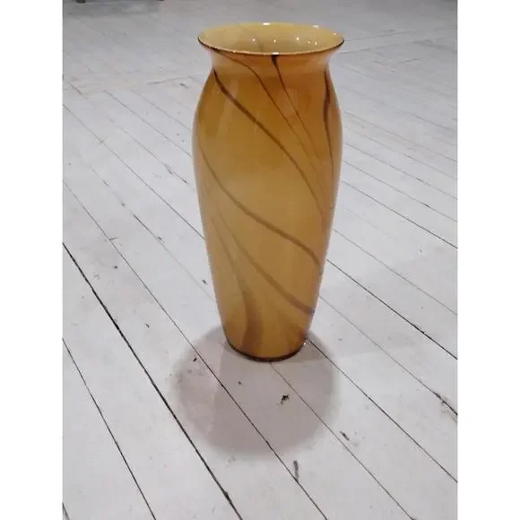 Stunning vintage swirled glass vase, yellow with brown, retroExcellent vintage conditionI will include the twigs with lights for free in case the buyer wishes to use as decorApproximately 15 inches x 7 inches