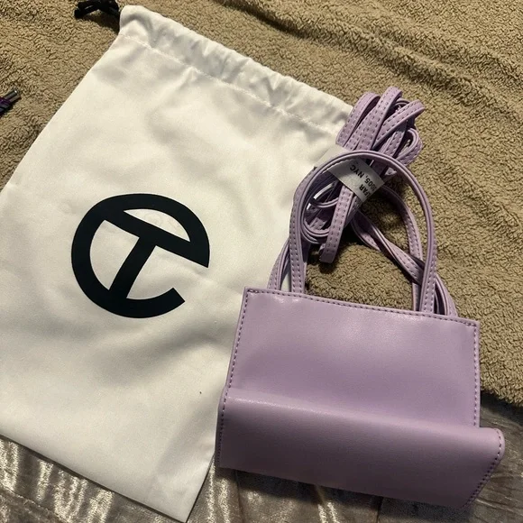 The Telfar Purple Mini Bag is a stylish accessory featuring a structured rectangular shape and a smooth leather-like finish. Its standout features include an embossed ´T´ logo on the front and a matching braided handle, making it a perfect compact choice for any occasion.Brand new!